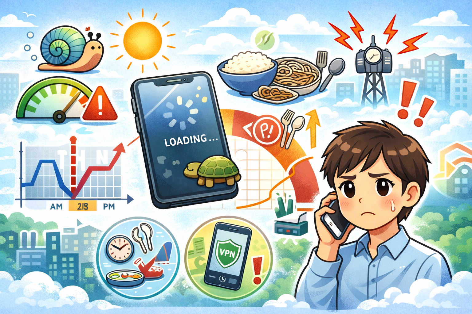 ahamoは夜よりも「昼だけ遅い」という声が多く、特に12時〜13時の時間帯で速度が大きく低下する傾向があります。これは回線の混雑と、利用者の行動パターンが原因です。