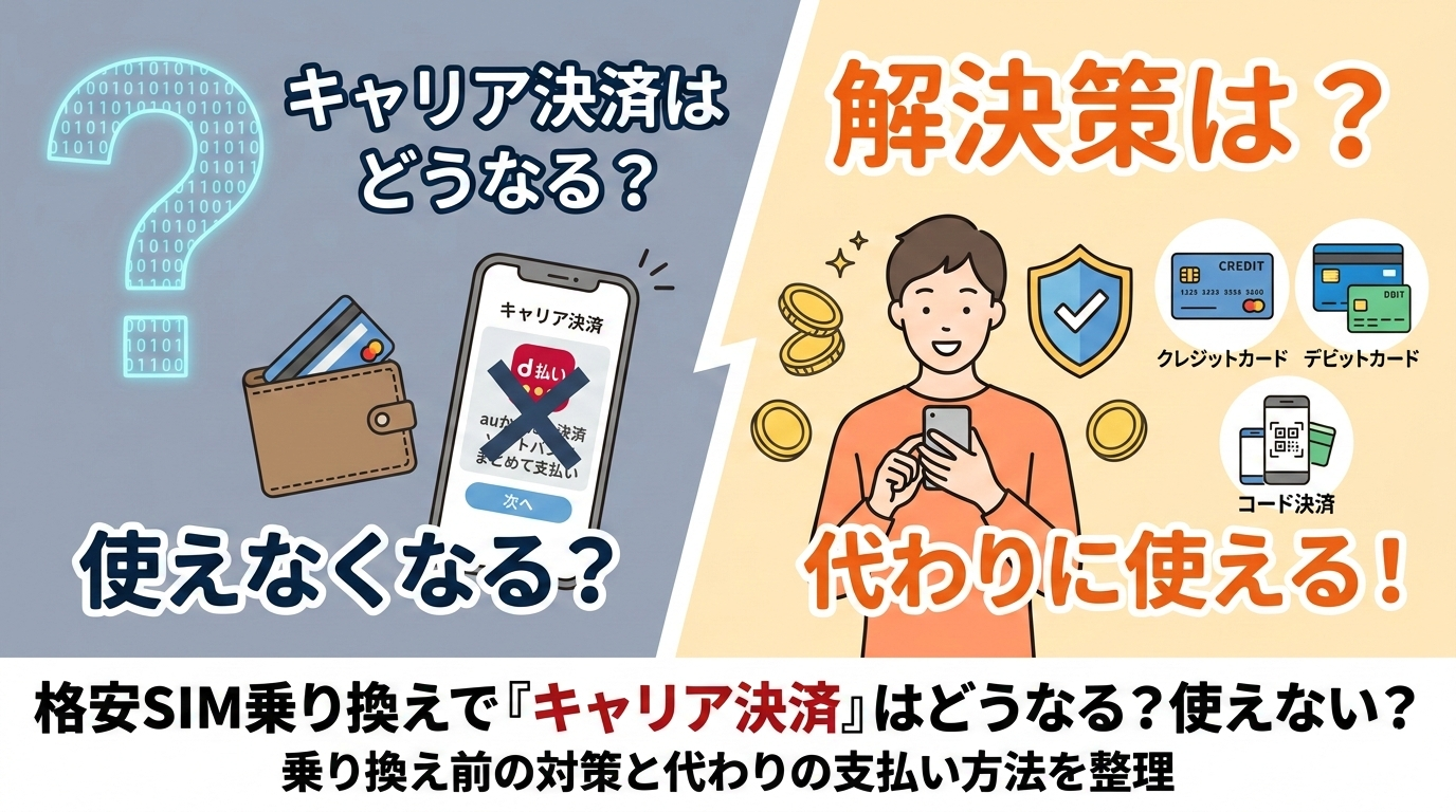 格安SIMに乗り換えるときに多い不安が「キャリア決済はどうなるのか」という点です。ここでは、乗り換え後に使えなくなるケースと、代わりに使える支払い方法を整理します。