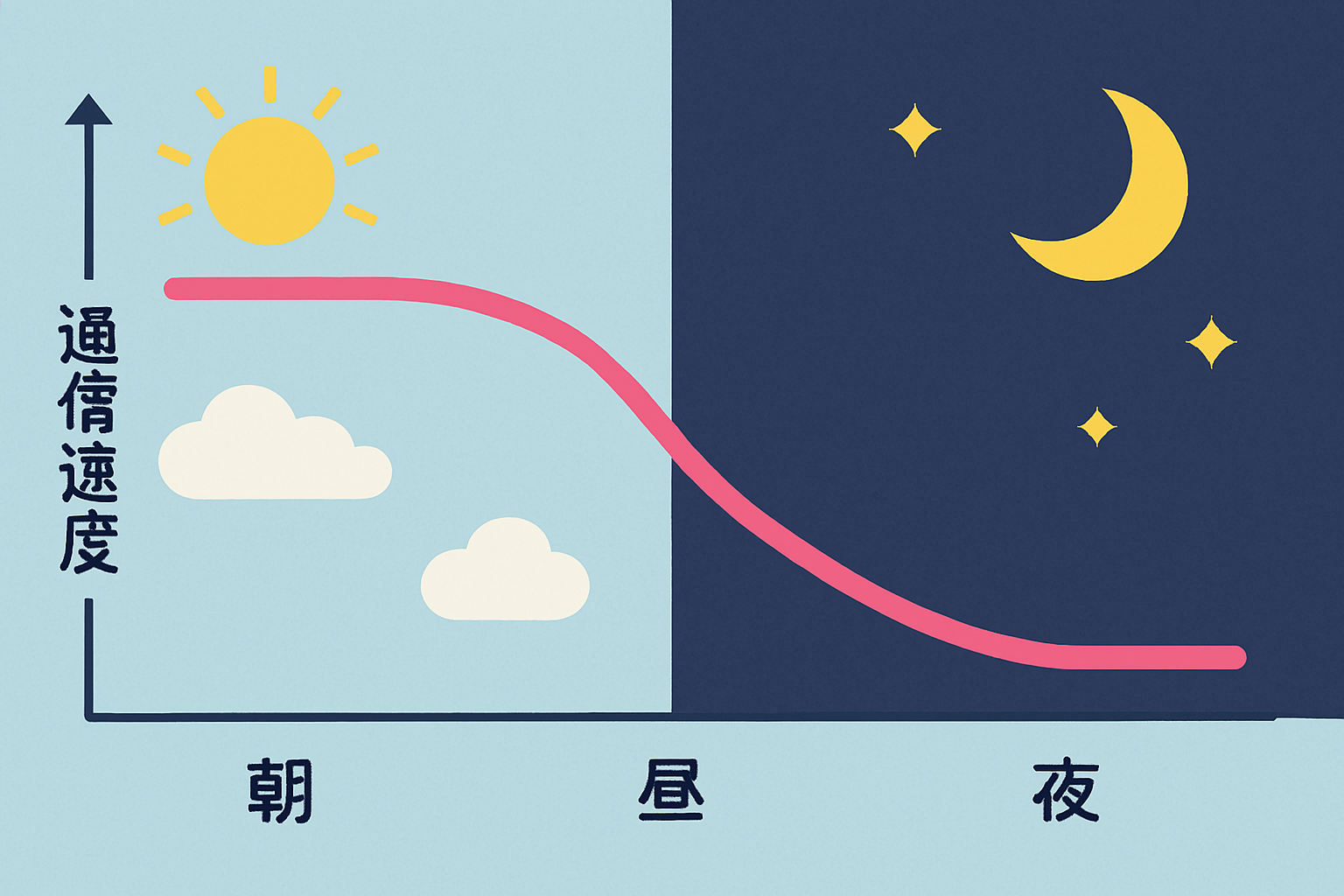 楽天モバイルは夜の時間帯に速度が低下することがあります。利用者が集中する時間帯に帯域が混雑し、通信が不安定になるためです。特に都市部では影響が出やすい傾向があります。